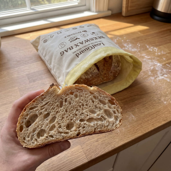 Plastic traps moisture and creates mould. Linen dries bread into a brick. LoafGuard's beeswax lining does what neither can — it breathes just enough to keep crust crispy and crumb soft for days!