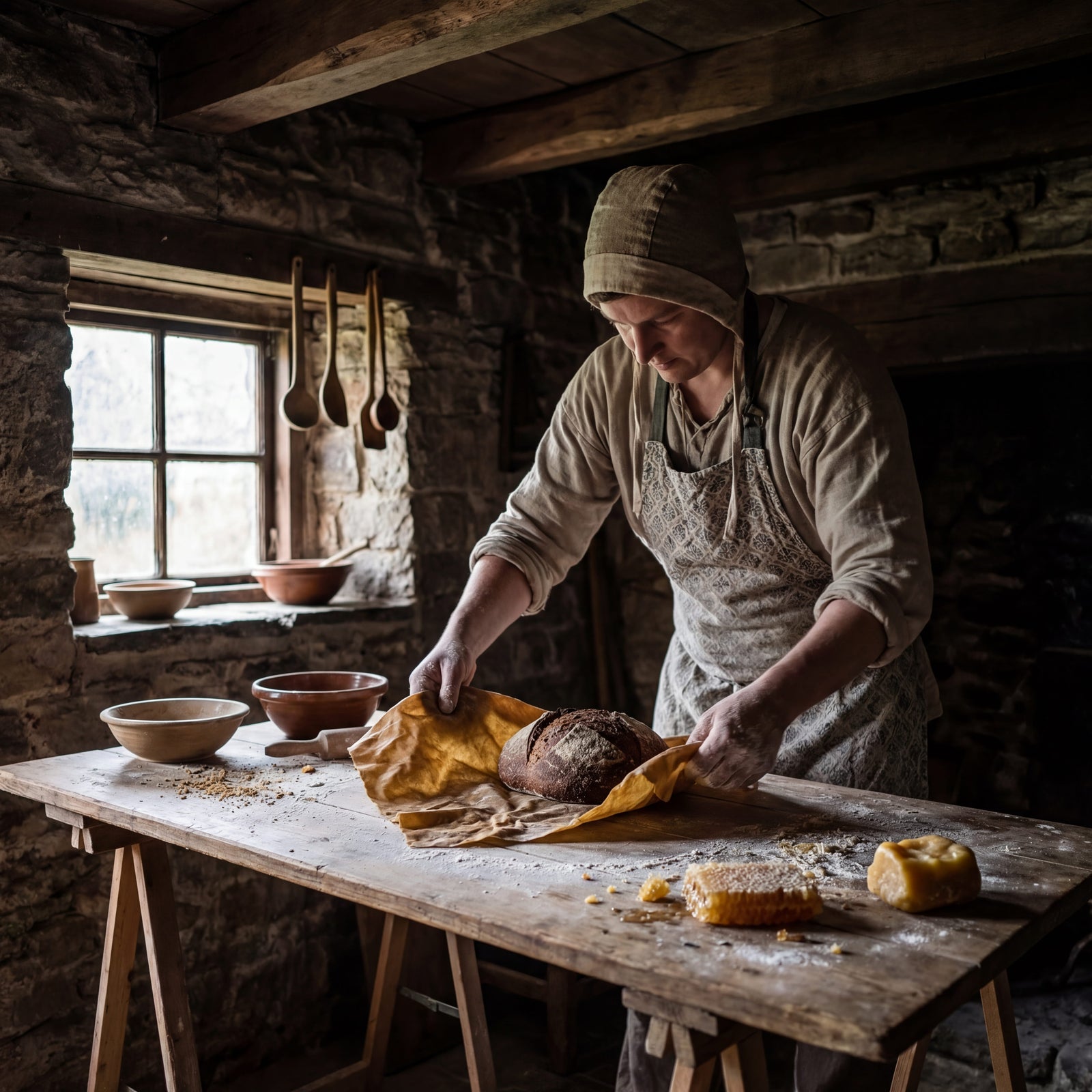 Long before plastic ever existed, they wrapped fresh loaves in beeswax cloth to preserve them naturally — keeping the crust crisp, the crumb soft, and slowing mold the traditional way.